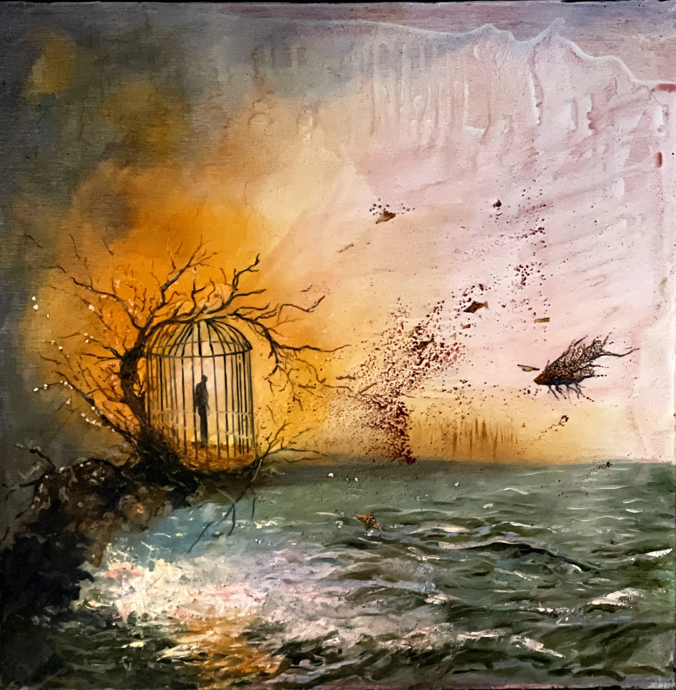 The river becomes a threshold: between land and water, reality and dream, decay and renewal. Figures linger in suspension, rendered with luminous ambiguity, evoking ritual and remembrance. This work invites contemplation of identity as fluid, shaped by time and unseen forces.