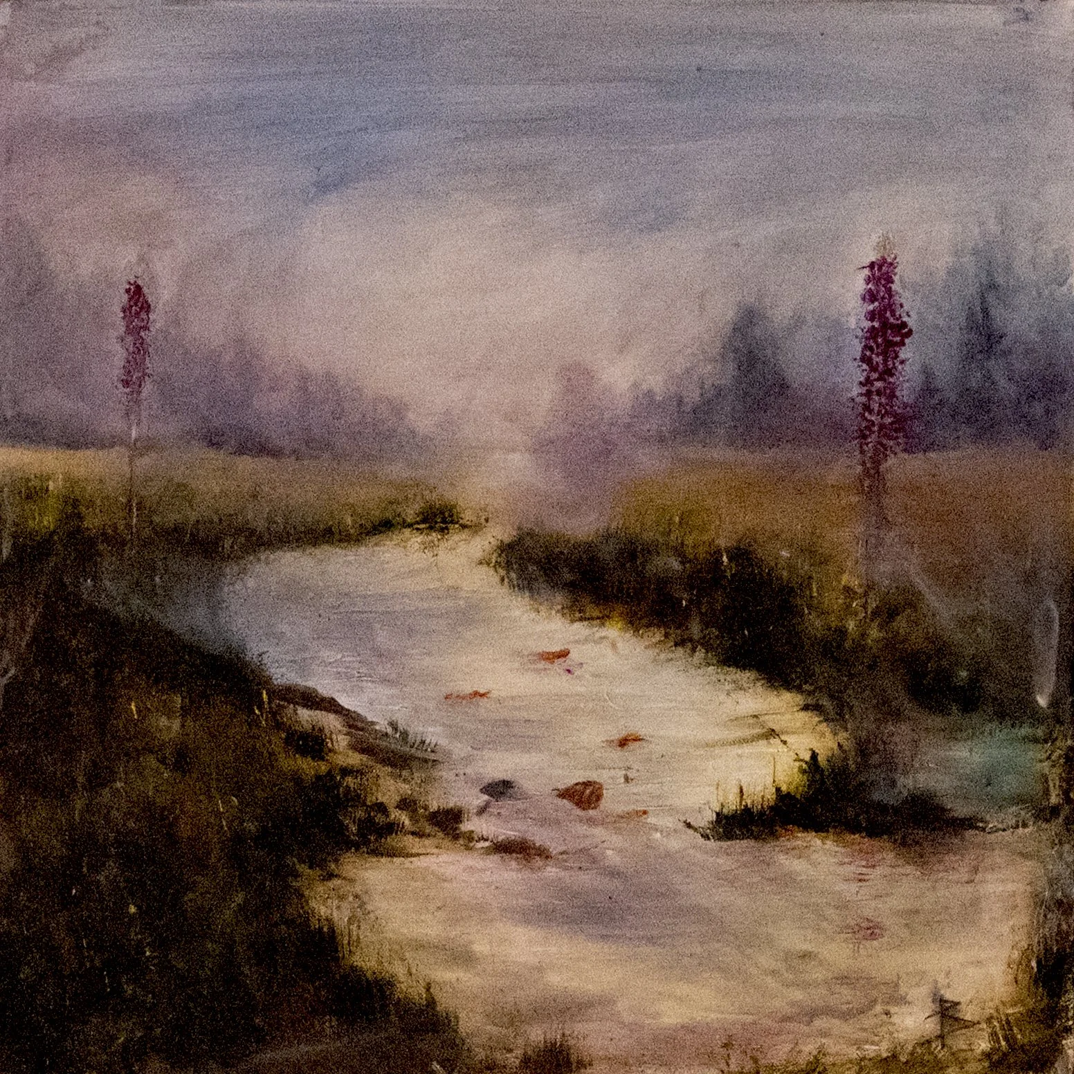 My paintings draw from the River Blackwater and the troubled waters of Lough Neagh, beginning with reflections and fragments at the river’s edge. From these emerge spectral guardians, root-born forms, and boats woven from memory—images where ecological crisis, myth, and personal observation converge.